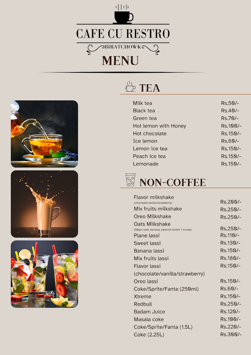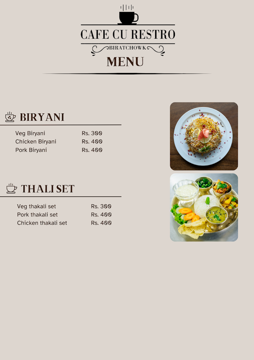 Whether you're craving a comforting snack or a sweet treat to end your day, CAFE CU Restro stands out as a popular haven in Biratchowk, perfect for gathering with friends or enjoying a quiet moment alone. The joy of a delicious meal is heightened in an environment that feels like home, and at CAFE CU Restro, that's exactly what you'll find.