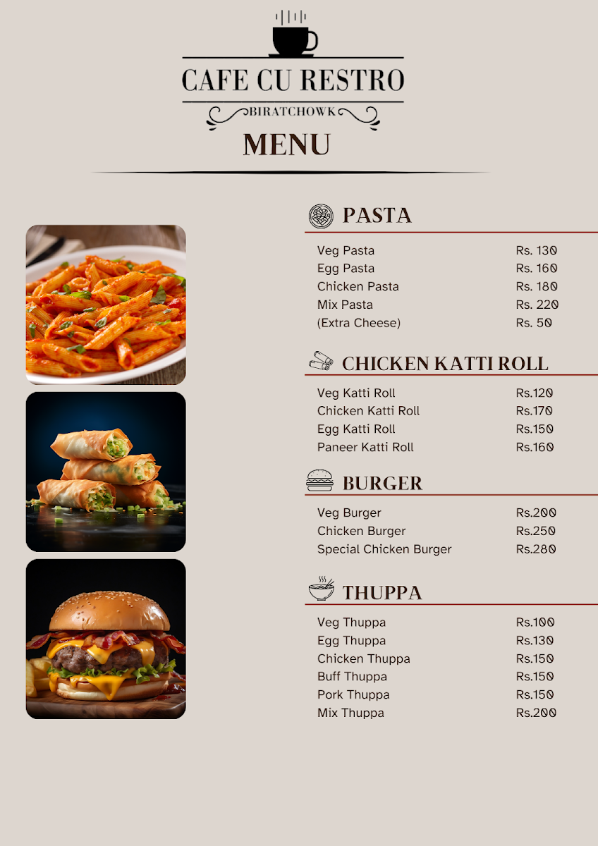Visit CAFE CU Restro today at Budhabare, Koshi Haraicha 56600, Nepal. With good food, a cozy atmosphere, and a friendly vibe, you're bound to leave with a smile and perhaps a new favorite dish!